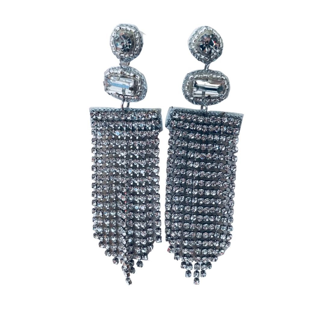 - Turn heads with this gorgeous rhinestone statement fringe earring!